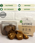 %100 Çiğ karabuğday unu ve yüksek kaliteli yerli badem taneleri kullanılarak üretilen “Glutensiz (Bademli) Biscotti”miz, şeker ilavesiz olup, hurma ile tatlandırılmıştır.